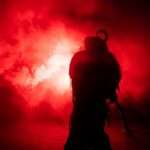 Krampus is the half-goat, half-demon, bad Santa, dates back to pagan times. He has sharp teeth, a long tongue, large claws, is tall, hairy like a goat and with cloven hooves, has a long tail, sometimes can be seen with chains, and carries a sack and switches. He is said to appear to take away those who have made the naughty list.